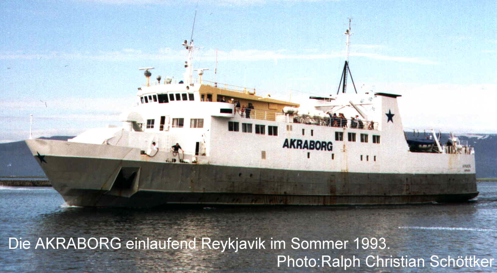 Seit Juni 1982 fährt das Fährschiff AKRABORG zwischen Reykjavik und dem weiter nord- westlich gelegenen Akranes. Mit einem herrlichen Blick auf die