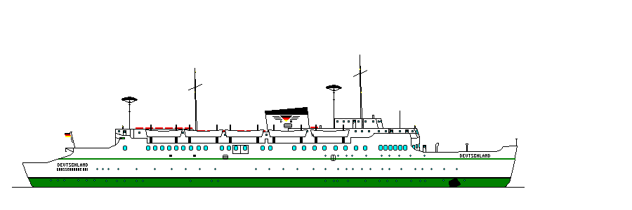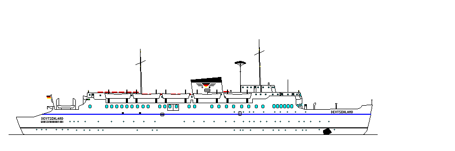 9. Mai 1953 in Großenbrode Kai eintrafen, präsentierte sich ihnen ein modernes, schneeweißes Schiff mit blauem Zierstreifen. Die Deutschland unterschied sich erheblich von ihren Vorgängern